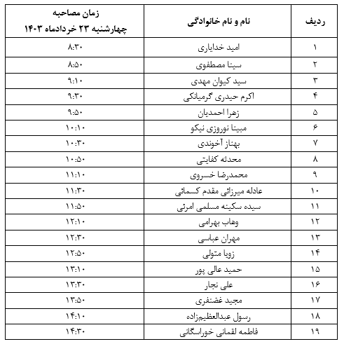 زمان‌بندی مصاحبه‌های دکتری 1403 گروه آمار