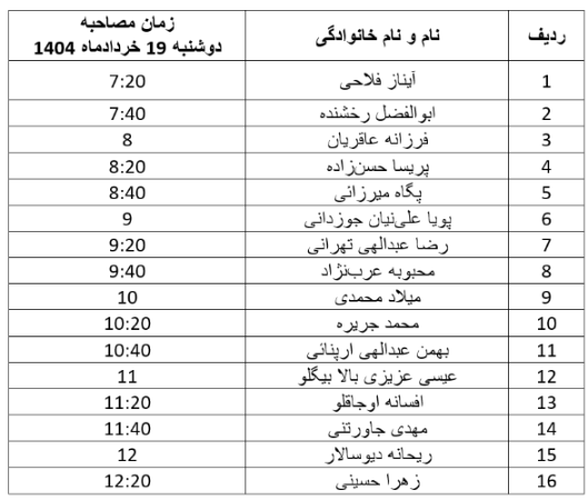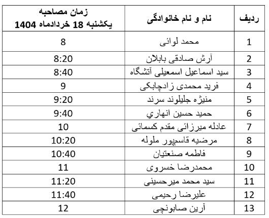 جدول زمانبندی مصاحبههای دکتری 1404 رشته آمار یکشنبه و دوشنبه مورخ 18 و 19 خردادماه 1404 به شرح زیر است.