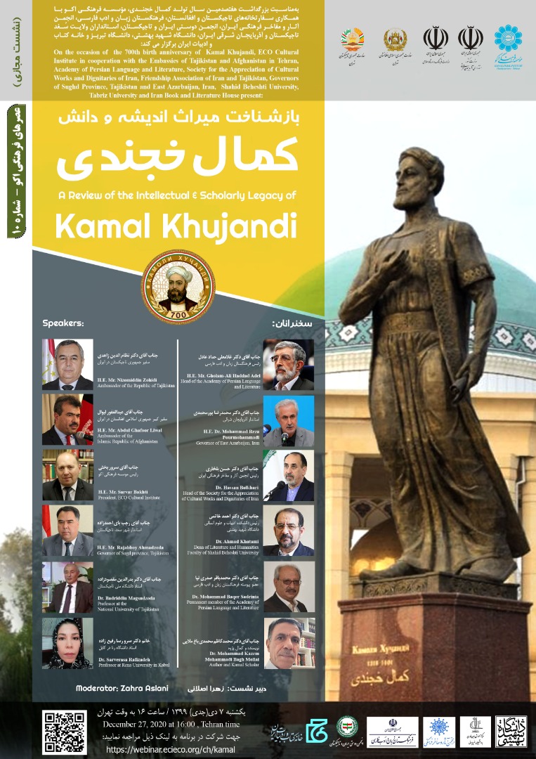 برگزاری نشست بازشناخت میراث اندیشه و دانش کمال خجندی 9105 بازدید print share 07 دی به مناسبت بزرگداشت هفتصدمين سال تولد کمال خجندی، معروف به شیخ کمال از عارفان و شاعران پارسیگوی قرن هشتم هجری،...